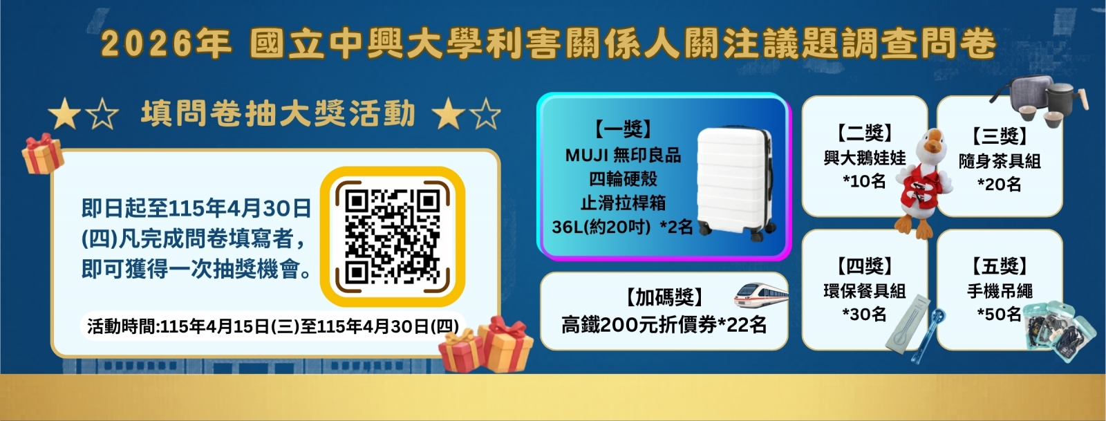 The winner list of lucky draw will be announced on NCHU’s USR website (https://usr.nchu.edu.tw).