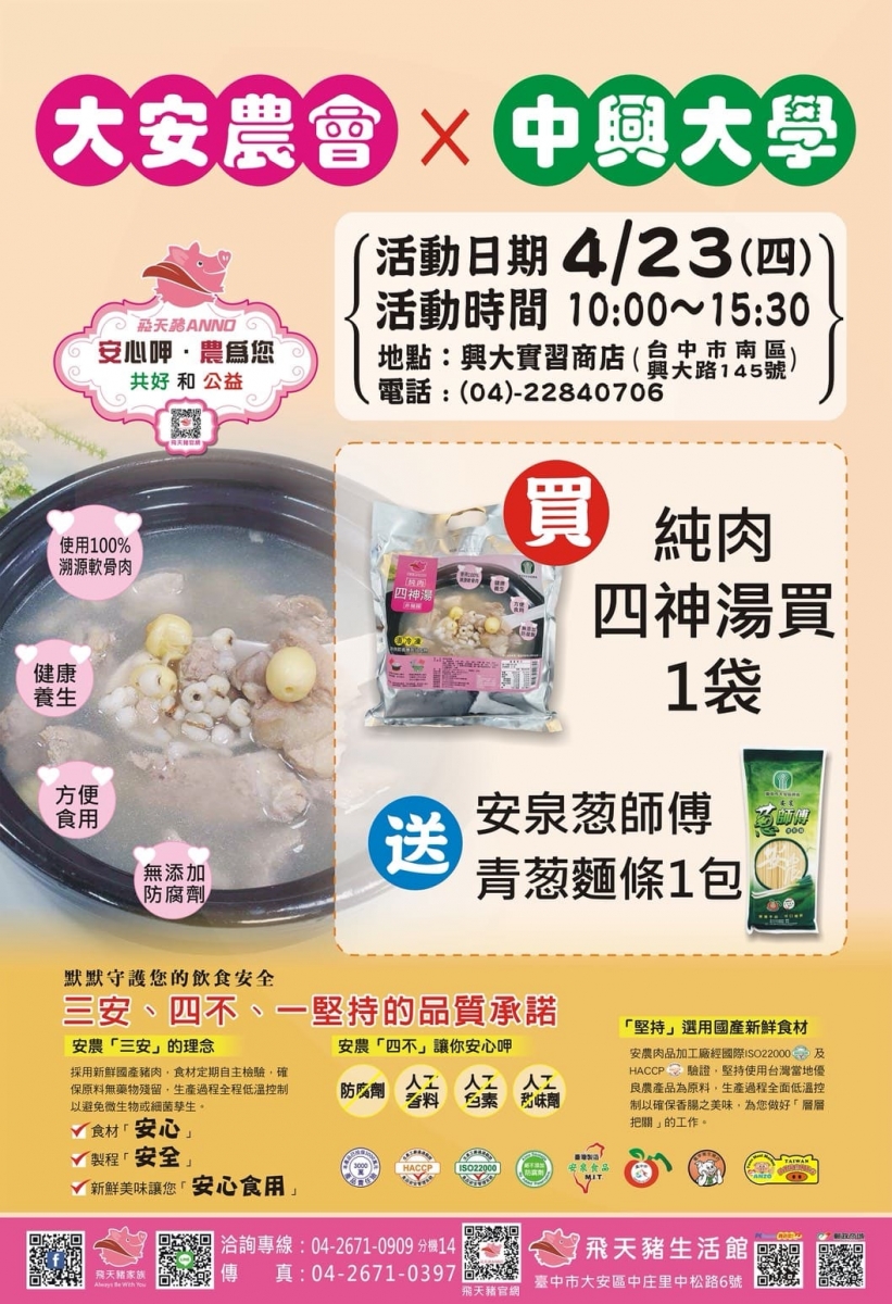 【實習商店x大安農會】★4/23純肉四神湯●歡迎來店試吃選購★